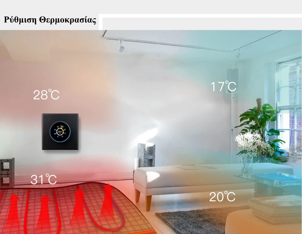 Εξοπλισμένος με αυτές τις προηγμένες λειτουργίες, ο θερμοστάτης αυτός αποτελεί την τέλεια επιλογή για τον σύγχρονο καταναλωτή που θέλει να συνδυάσει άνεση και ενεργειακή αποδοτικότητα