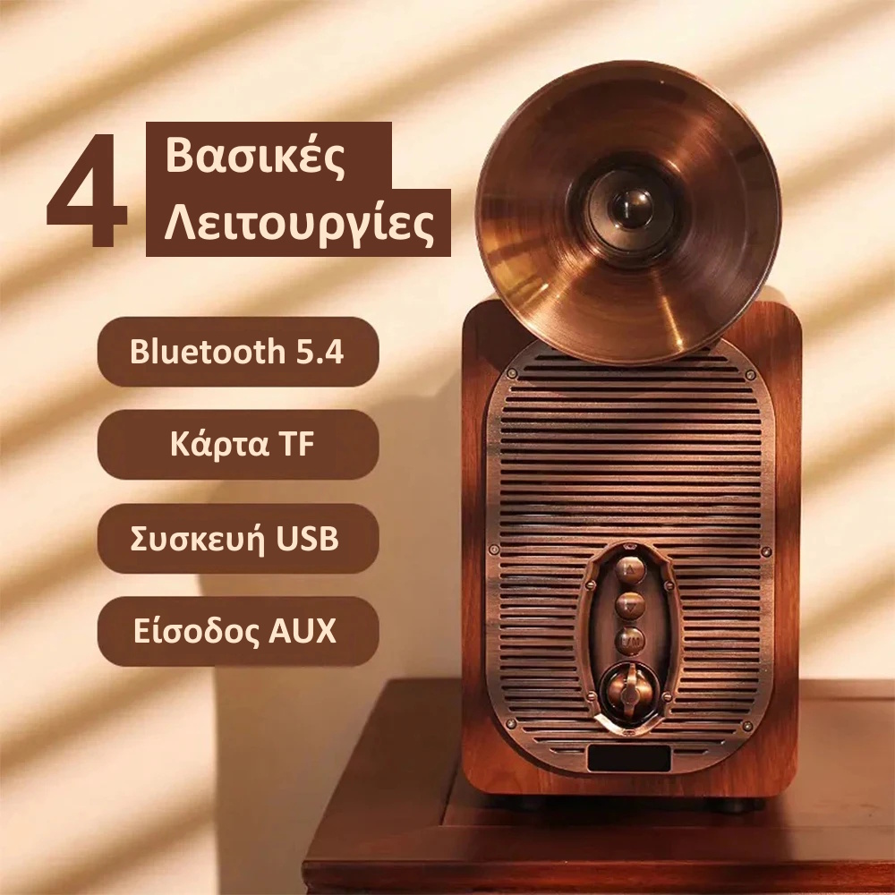 Το Ασύρματο Ηχείο με ξύλινη ρετρό σχεδίαση δεν είναι απλά μια ακόμη συσκευή αναπαραγωγής μουσικής, αλλά μια ολοκληρωμένη λύση ήχου που συνδυάζει δύναμη, κομψότητα και πρακτικότητα. Με ισχυρή απόδοση έως 30W, μοντέρνες λειτουργίες όπως TWS, Bluetooth 5.4, TF/USB/AUX και μεγάλη αυτονομία μπαταρίας, καλύπτει τόσο τις καθημερινές σας ανάγκες όσο και τις πιο απαιτητικές στιγμές διασκέδασης.