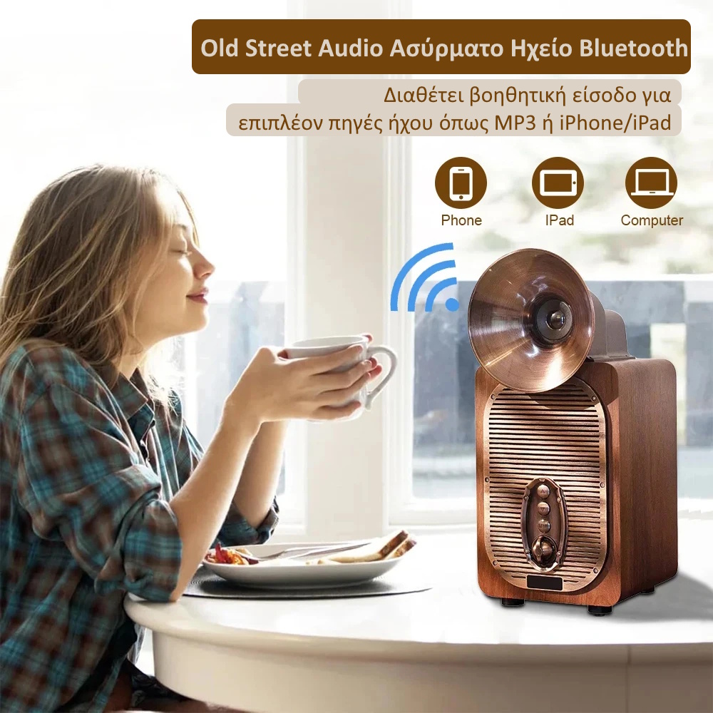 Old Street Audio Ασύρματο Ηχείο Retro Ξύλινο (30W/Μπαταρία 4000mAh/Bluetooth 5.4/USB/TF/FM Radiο/TWS)