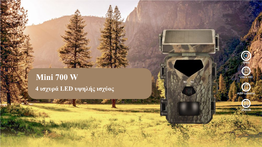 Η Mini700W αποτυπώνει φωτογραφίες έως 30 Megapixel και καταγράφει βίντεο 4K στα 30 καρέ ανά δευτερόλεπτο, προσφέροντας καθαρή και ρεαλιστική απεικόνιση σε κάθε λήψη. Χάρη στον αισθητήρα PIR εντοπίζει κίνηση σε απόσταση έως 20 μέτρων, ενώ ενεργοποιείται αυτόματα με χρόνο απόκρισης μόλις 0,3 δευτερόλεπτα, εξασφαλίζοντας ότι δεν θα χαθεί καμία στιγμή.