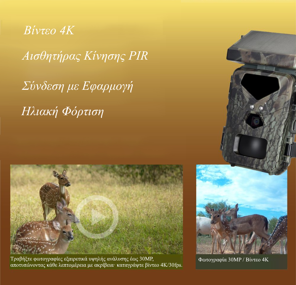 Η SuntekCam Mini700W συνδυάζει ενεργειακή αυτονομία, υψηλή ανάλυση και ανθεκτικότητα, προσφέροντας εικόνα έως 30MP και βίντεο 4K/30fps (H.265). Το σώμα της κάμερας είναι ανθεκτικό σε σκόνη και νερό, με πιστοποίηση IP65, ενώ ο καμουφλαρισμένος σχεδιασμός της την καθιστά διακριτική σε φυσικά περιβάλλοντα.
