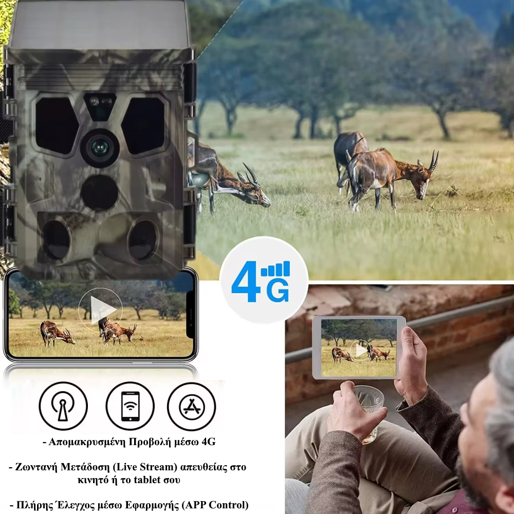 Η ενσωματωμένη υποδοχή SIM δίνει τη δυνατότητα απομακρυσμένου ελέγχου μέσω εφαρμογής στο κινητό. Μπορείτε να βλέπετε live εικόνα, να λαμβάνετε ειδοποιήσεις όταν ανιχνευθεί κίνηση, να αποθηκεύετε αρχεία ή να τα ανεβάζετε απευθείας σε cloud υπηρεσία. Η σύνδεση 4G εξασφαλίζει σταθερή μετάδοση βίντεο χωρίς διακοπές, ανεξάρτητα από την απόσταση ή το Wi-Fi.