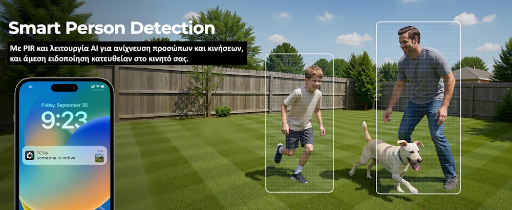 Η κάμερα μεταδίδει live video, φωτογραφίες και ειδοποιήσεις στο κινητό. Η εφαρμογή υποστηρίζει ταυτόχρονη παρακολούθηση πολλών καμερών, ιδανική για μεγάλες εκτάσεις.