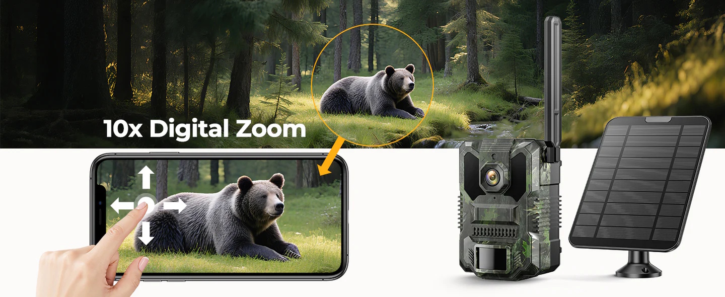 Campark TC36 4G Trail Camera με Live Video 2.5K, Ηλιακό Πάνελ, Νυχτερινή Λήψη & Ανίχνευση Κίνησης (IP66/10x Zoom)