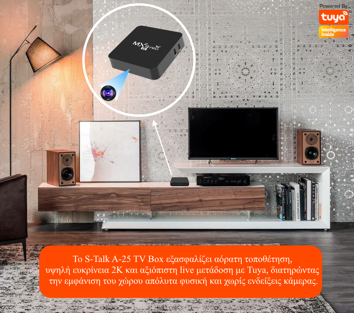 Κρυφή κάμερα με live εικόνα τοποθετημένη μέσα σε ειδικό κέλυφος τύπου TV Box για πλήρη κάλυψη και απόλυτη διακριτικότητα. Το νέο S-Talk A-25 είναι η εξελιγμένη Version 2 της σειράς, σχεδιασμένη ώστε η κρυφή κάμερα να παραμένει εντελώς αόρατη στο εσωτερικό ενός TV Box shell, χωρίς καμία εξωτερική ένδειξη ότι υπάρχει module καταγραφής. Πρόκειται για μια λύση που προσφέρει υψηλή ευκρίνεια, WiFi παρακολούθηση σε πραγματικό χρόνο και σταθερή λειτουργία με τη δημοφιλή εφαρμογή Tuya.