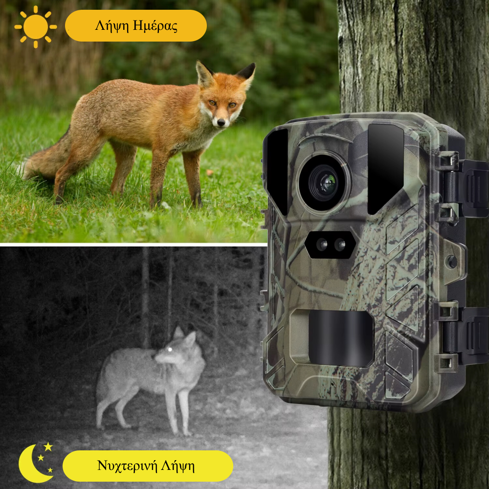 Η κάμερα διαθέτει υπέρυθρη τεχνολογία 940nm που προσφέρει νυχτερινή όραση χωρίς ορατό φως, εξασφαλίζοντας πλήρη διακριτικότητα. Κατά τη διάρκεια της ημέρας καταγράφει έγχρωμες φωτογραφίες και βίντεο, ενώ τη νύχτα οι λήψεις είναι ασπρόμαυρες αλλά εξίσου καθαρές. Η λειτουργία motion detection ενεργοποιεί την κάμερα μόνο όταν ανιχνευτεί κίνηση, εξοικονομώντας ενέργεια και αποθηκευτικό χώρο.