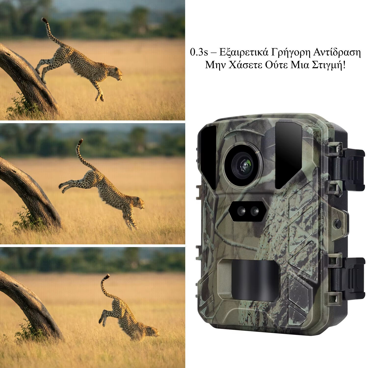 Με εξαιρετικά γρήγορο χρόνο απόκρισης (0.2–0.6s), η κάμερα δεν χάνει καμία στιγμή. Ενεργοποιείται άμεσα μόλις ανιχνεύσει κίνηση, ιδανική για παρακολούθηση ζώων, εισόδων, εξωτερικών χώρων ή περιοχών που χρειάζονται συνεχή εποπτεία.