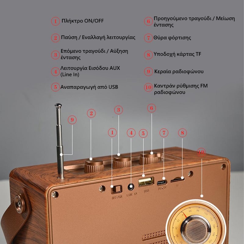 Το Ρετρό Ασύρματο Ηχείο είναι η ιδανική πρόταση για όσους εκτιμούν την αισθητική του παρελθόντος χωρίς να θυσιάζουν την τεχνολογική άνεση του σήμερα. Με ισχύ 5 W, Bluetooth 5.4 και πλήθος λειτουργιών (USB, TF, FM, AUX), προσφέρει ποιότητα ήχου και ελευθερία χρήσης σε κάθε χώρο.
