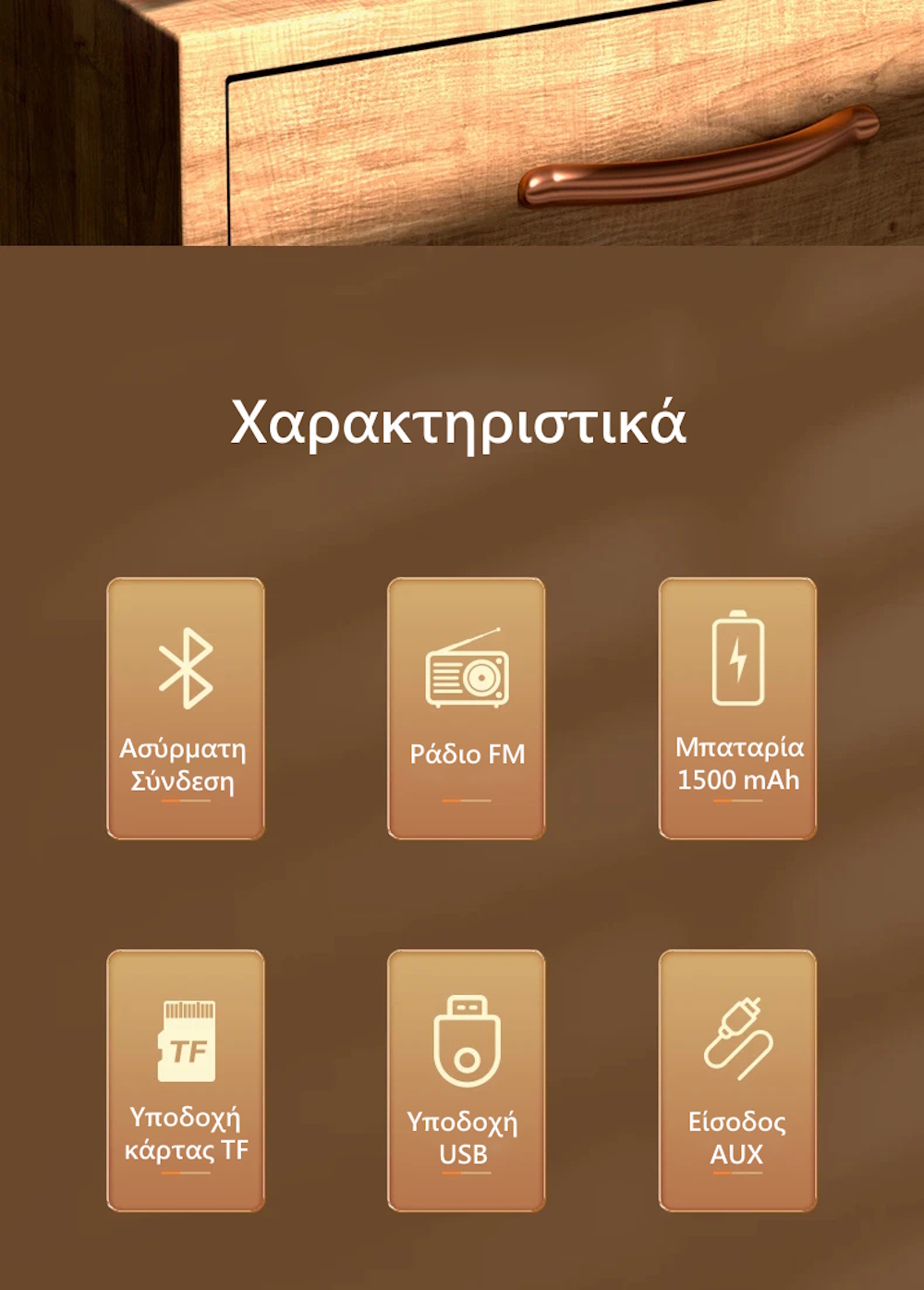 Αισθητική και Απόδοση μαζί: Η vintage σχεδίαση του ηχείου με ξύλινο περίβλημα χαρίζει διαχρονική ομορφιά, ενώ η τεχνολογία Bluetooth 5.4 προσφέρει σταθερότητα και υψηλή ποιότητα μετάδοσης ήχου.