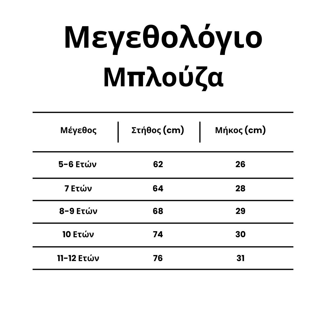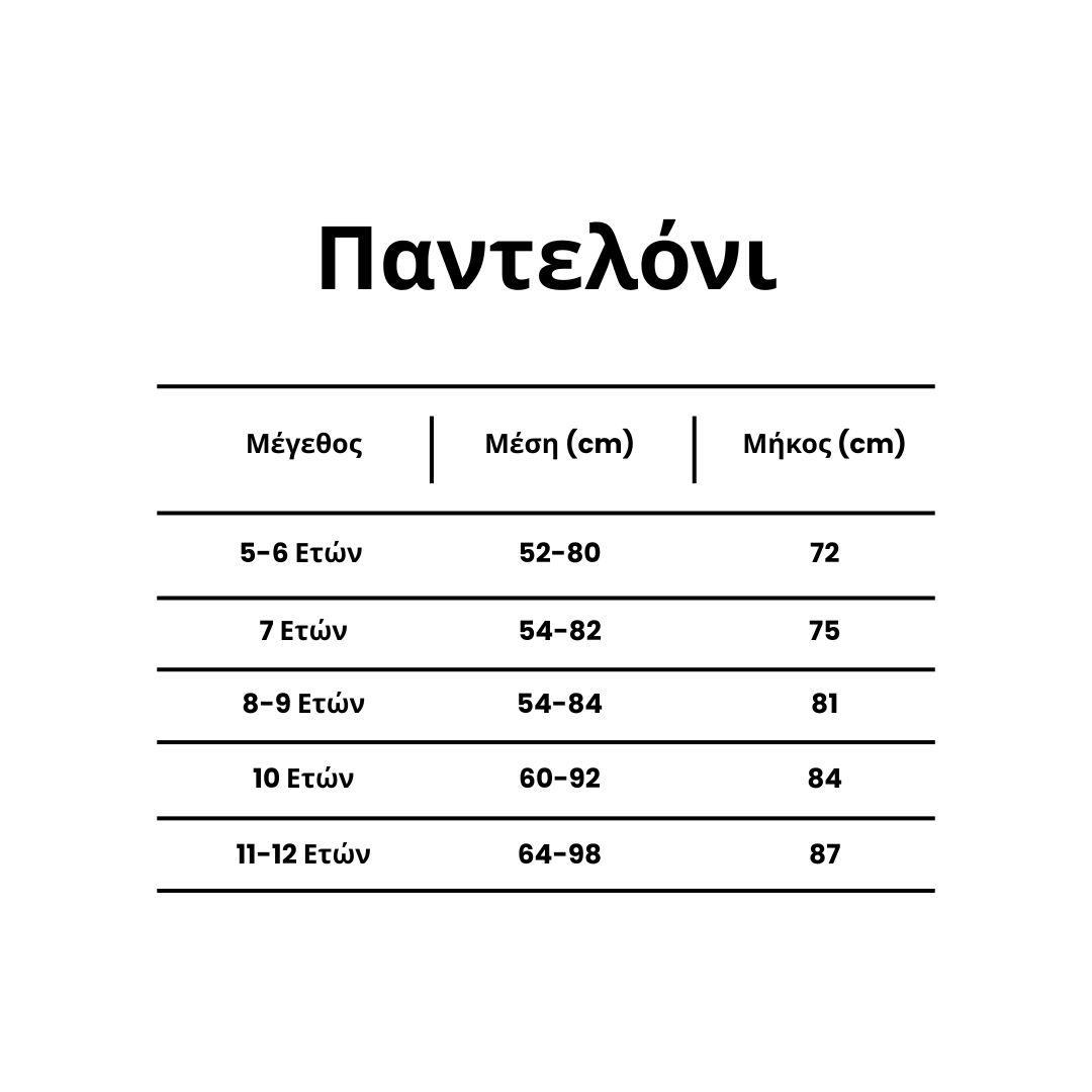 Μεγέθη: Κατάλληλα για παιδιά 5–12 ετών