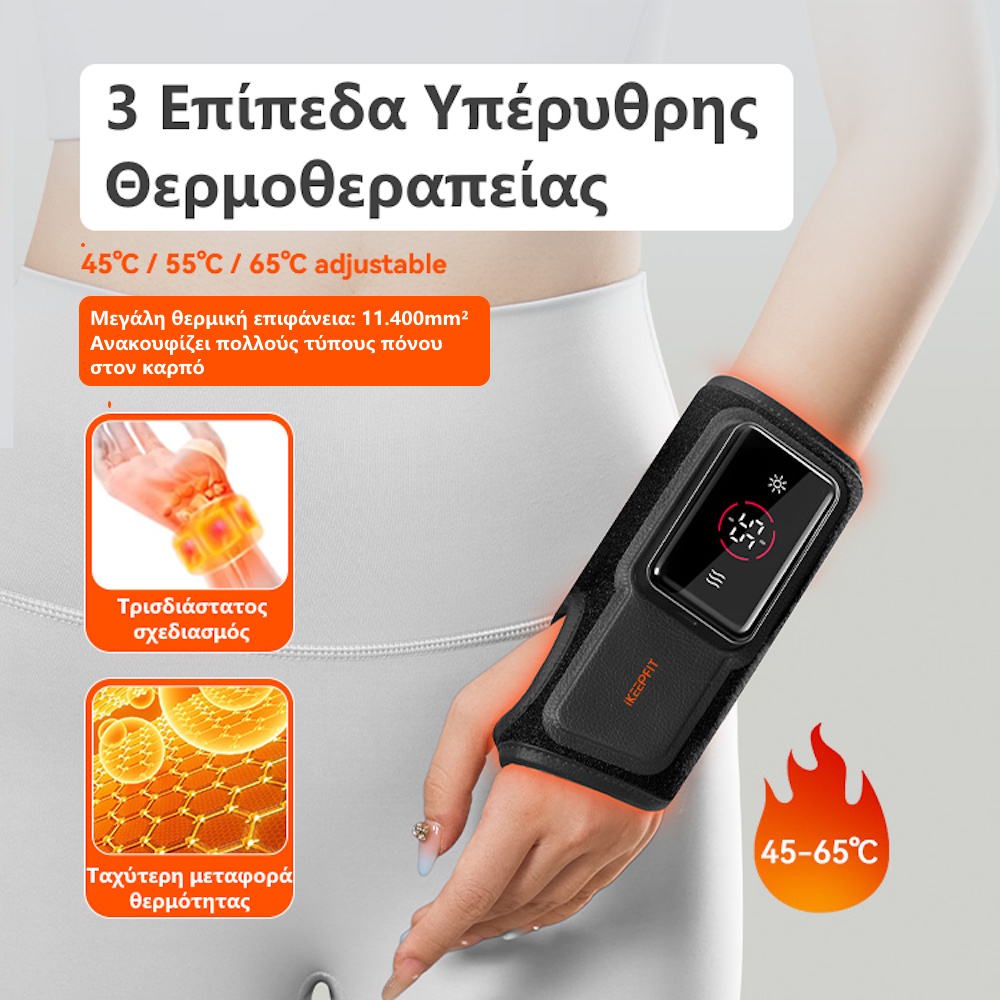 Η Θερμαινόμενη Συσκευή Μασάζ Καρπού iKeepFit WB01 συνδυάζει θερμότητα γραφενίου, ρυθμιζόμενη πίεση και εργονομικό θάλαμο μασάζ για βαθιά ανακούφιση και αποκατάσταση.