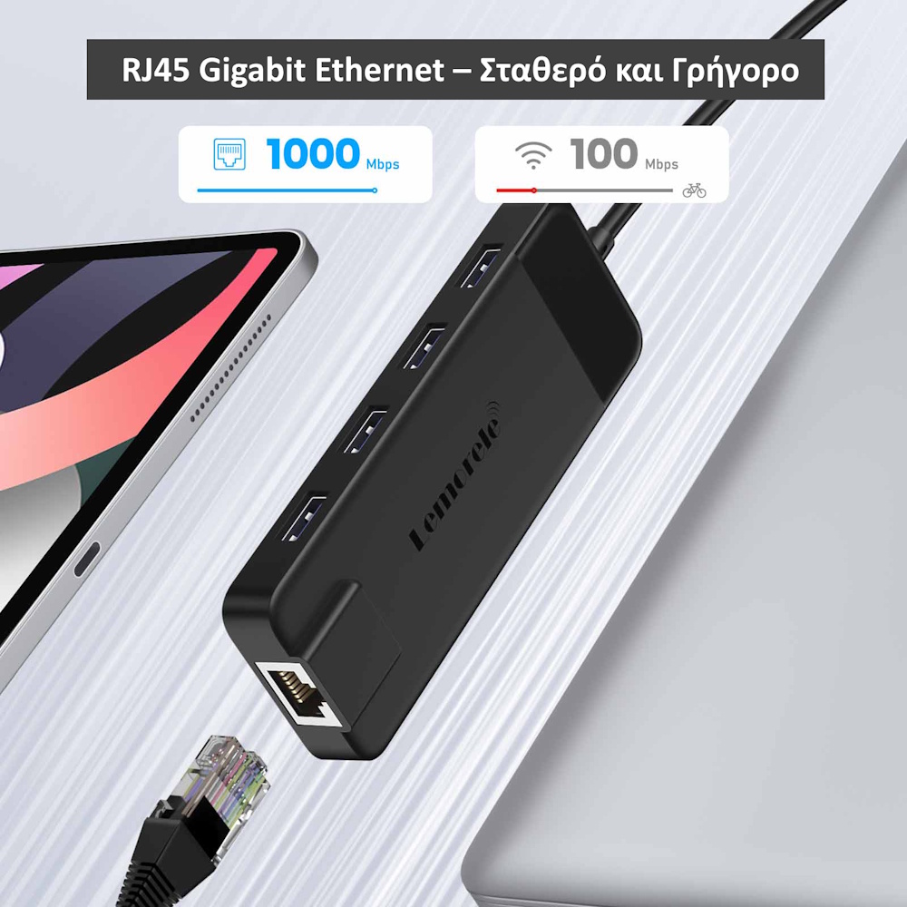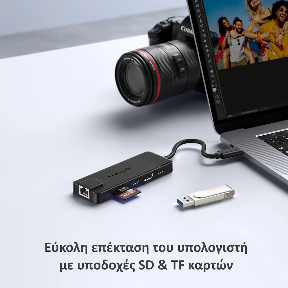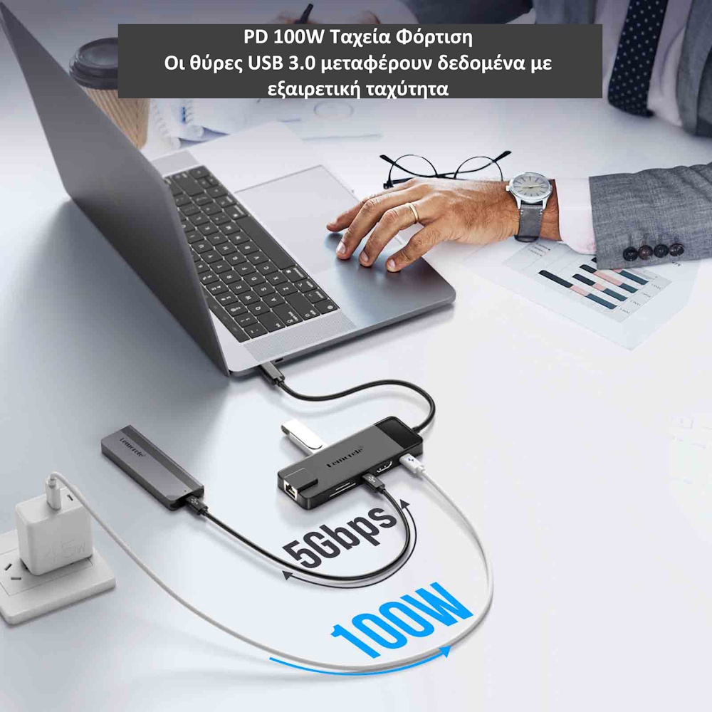 Lemorele TC93 USB-C Hub 10-σε-1 Multiport Adapter με HDMI 4K, PD 100W, Gigabit Ethernet, SD/TF & 5x USB για Laptop / MacBook / Switch